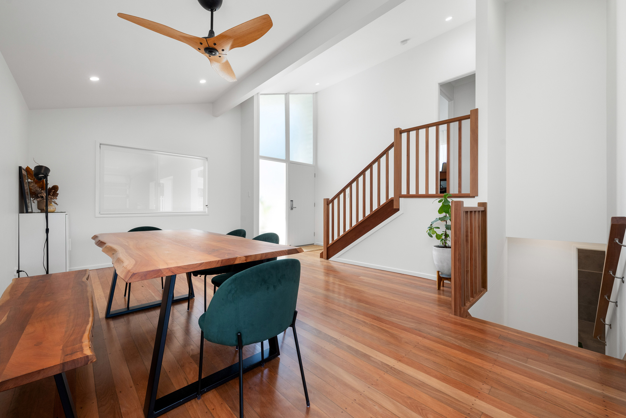 Inside, the layout was completely reworked to enhance functionality and create a light-filled, open-plan living space that connects seamlessly to the outdoors. Every detail, from the material selections to the finishes, was chosen to balance practicality with contemporary style.
